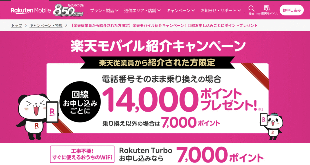 「従業員紹介」は、他の紹介キャンペーンと比べてもらえるポイントが多く、再契約や複数回線にも対応しているのが魅力です。
